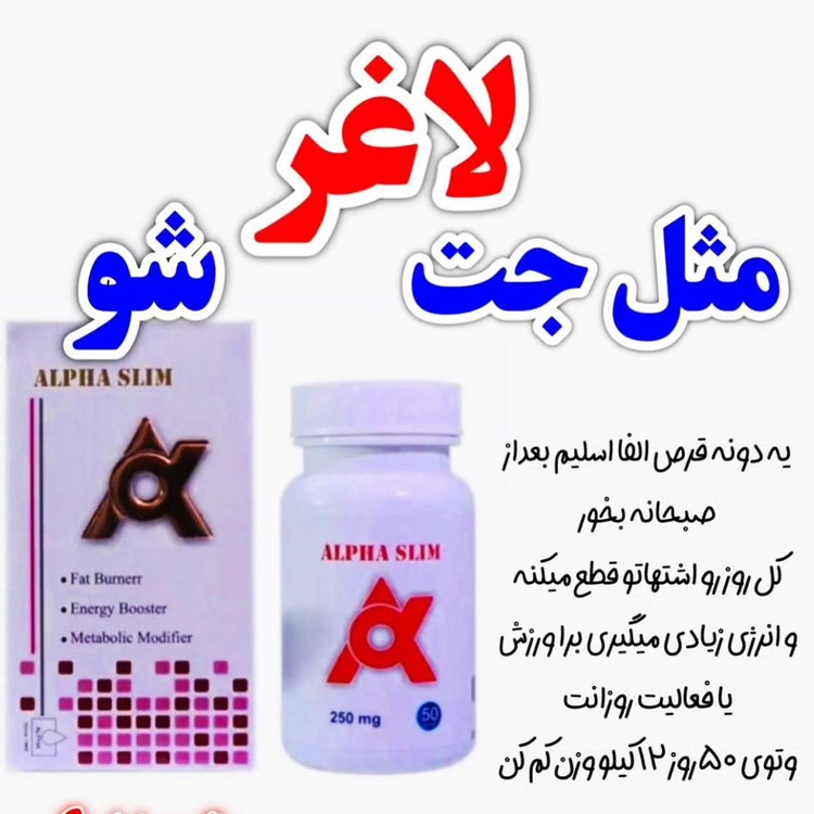 قرص لاغری الفا اسلیم دولیبل دارای 50 عدد کپسول میباشد قویتری قرص لاغری موجود در بازار عمالکرد قرص الفا اسلیم Alpha Slim بر روی بدن : 1 چربیسوز و لاغری بدون نیاز به رژیم و ورزش 2 افزایش سوخت و ساز بدن برای چربی سوزی 3 کاهش اشتها و کور کردن اشتهای فرد مصرف کننده 4 کاهش وزن سریع بدون عارضه 5 شفاف کردن پوست 6 مناسب برای بدن های استپ کرده 7 مناسب برای افرادی که قرصهای لاغری زیاد مصرف کرده اند 8 مناسب برای خانم ها و اقایان 9 بدون نیاز به رژیم و ورزش 10 مختص ورزشکاران کپسولهای الفا با بالا بردن متابولیسم بدن شما و کاهش اشتهای قوی که دارد میتواند بدن شما را در شرایط یک ورزشکار دو میذانی قرار دهد . که در هنگام ورزش انرژی زیادی مصرف میکند .کپسول الفا به طور معجره اسایی باعث دفع چربی های اضافه بدن شما میشود . بیشترین تاثیر قرص الفا اسلیم در ناحیه شکم و پهلو است . 09226356022